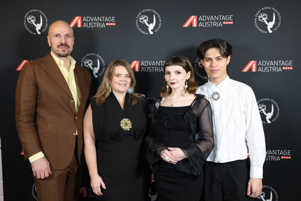 Photo Provided by the INTERNATIONAL EMMY® AWARDS. From left: Co-Producer Viktor Enoksen, Series Creator Silje Bürgin-Borch, lead Kátjá Rávdná Broch Einebakken and Series Creator Vegard Bjørsmo.